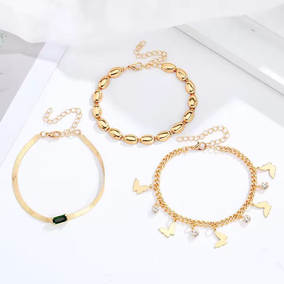 ছাড়Imported Luxury Gold Bracelet Set Bangladesh – Emerald Stone & Butterfly
